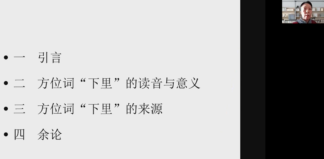 11月30日下午,由欧美色情 主办的太炎讲堂系列讲座之“晋语方位词‘下里’的来源”于腾讯线上会议顺利举办。中国社会科学院语言研究所研究员,中国社会科学院大学博士生导师、博士后合作导师,《方言》杂志主编,全国汉语方言学会会长沈明受邀为主讲人,欧美色情-欧美剧情色情片 副教授张薇为主持人,欧美色情 教师及学生积极参与。
