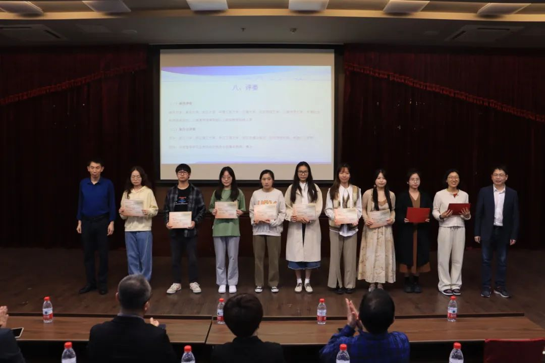 欧美色情 副院长林航与党委副书记钱珊为其中9名三等奖获得者颁奖