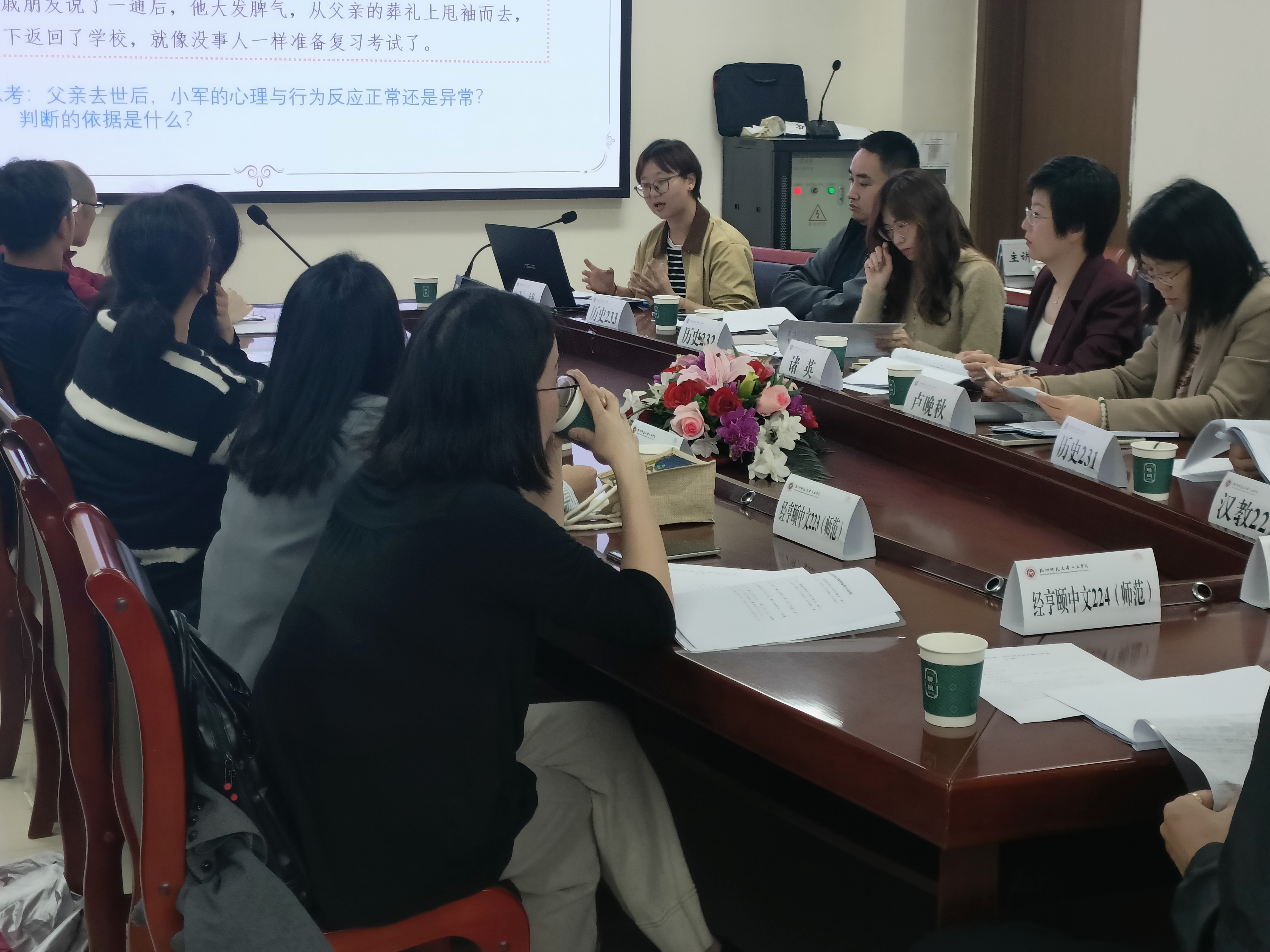 会上,各年级辅导员通报了分管班级的基本信息、适应情况、生涯规划摸底及个性化信息等。卢晚秋就2022级、2023级学生在新生始业教育、适应性问题、生涯规划等方面进行了深入分析,强调班主任要关心关爱学生,注重师生互动,做学生健康成长的指导者和引路人 。优秀班主任代表李靓、任虎老师,分享了他们在学生谈心谈话及班级管理建设方面的工作经验,两位老师分别就班级的过程管理和因人而异推动师生联系等话题作了深入交流,丰富的工作案例使与会班主任们收获良多。