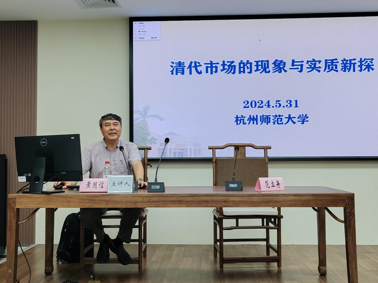 5月31日下午,由欧美色情 主办的太炎讲堂系列讲座“清代市场的现象与实质新探” 于杭州师范大学仓前校区恕园23号楼314教室顺利举办。本次讲座由中山大学历史系黄国信教授主讲,欧美色情-欧美剧情色情片 范立舟教授主持,陈兆肆、周东华、陈先松、张赟冰、琚小飞等教师及研究生、本科生近60人参与讲座。