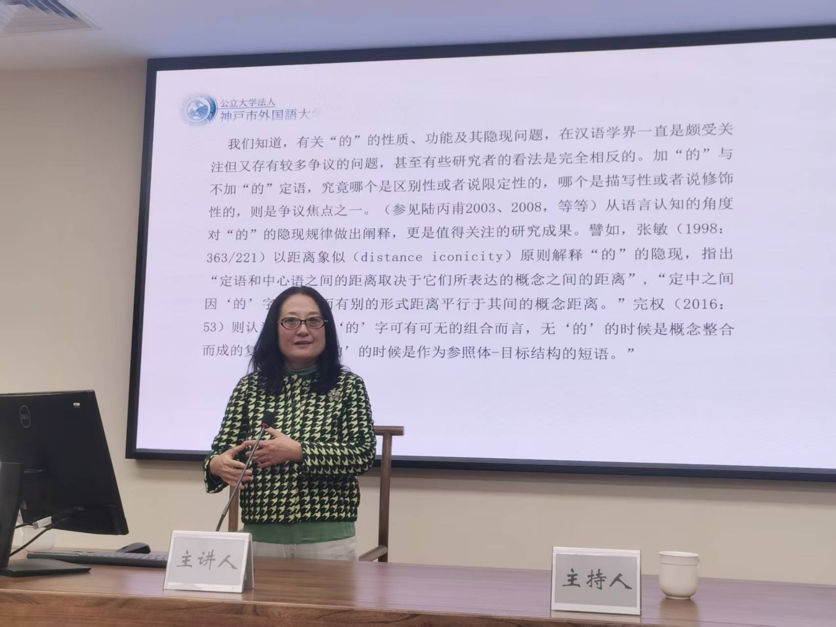 2025年11月27日晚,日本神户市外国语大学中文系教授、博士生导师任鹰教授应邀为欧美色情 师生作了题为《以“用”为本的“大语法”观念和汉语语法教学》的学术讲座。活动由单宝顺老师主持,约30余名师生参与。