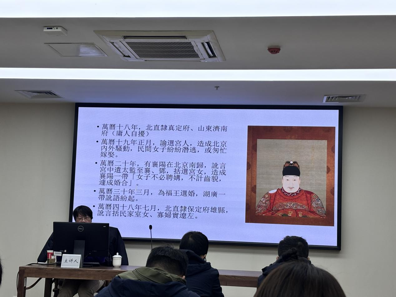 最后,主持人余清良副教授对讲座进行了总结。他指出,邱仲麟研究员以其深厚的史料功底与缜密的分析逻辑,为我们生动再现了明代采选秀女背后的社会图景,并揭示了谣言如何产生、传播和引发大规模社会恐慌的复杂机制。这场讲座不仅是对一段特殊历史的深入剖析,更为我们理解明代政治、社会与文化提供了一个独特的视角,具有重要的启发意义。