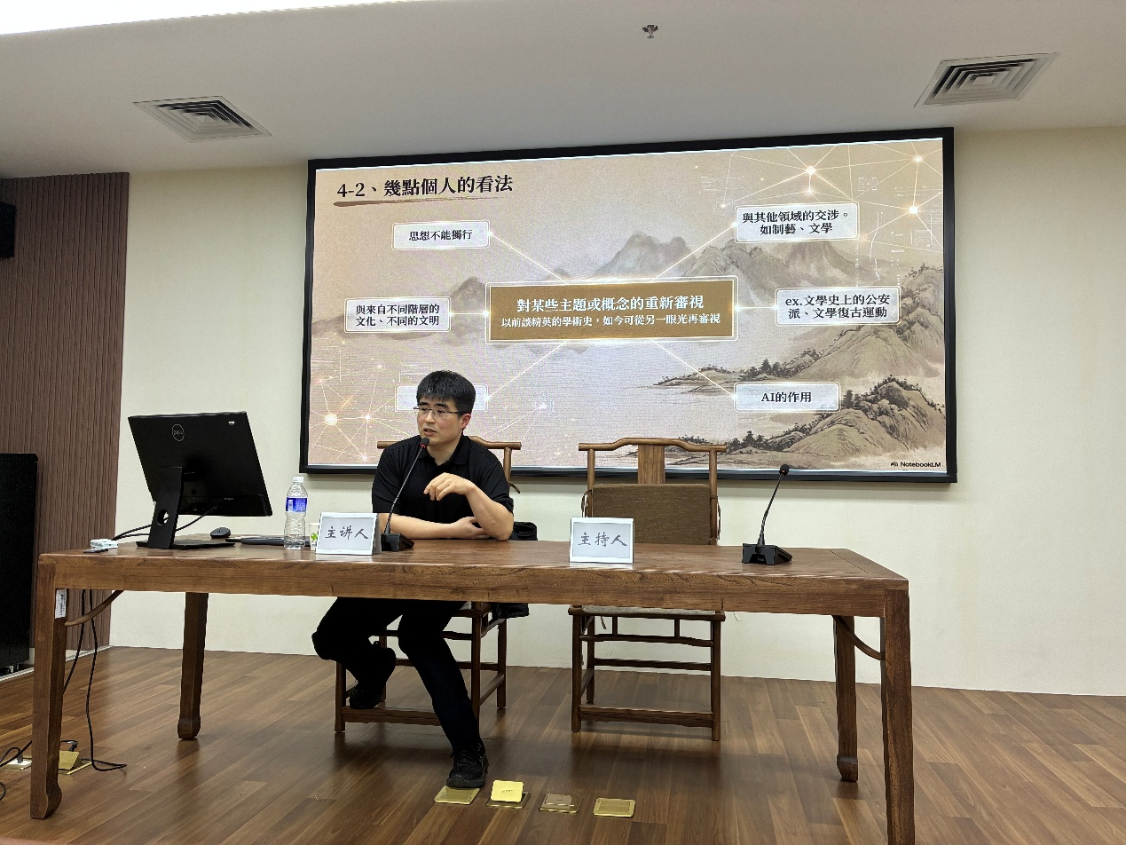 讲座最后,张教授基于对阳明学传播、流变与地域实践的深度剖析,分享了对思想史研究的全新思考。1990年代以来,大量典籍文献整理出版,推动思想史研究从空谈义理转向实地实践,研究范式发生根本性转变。张教授提出,思想既是社会文化共识的基调,也是推动历史发展的转辙力量;思想史研究需打破学科壁垒,与制艺、文学等领域交叉融合,重新审视公安派、文学复古运动等传统议题;同时可借助AI等新技术工具,开拓思想史研究的新路径与新方法。